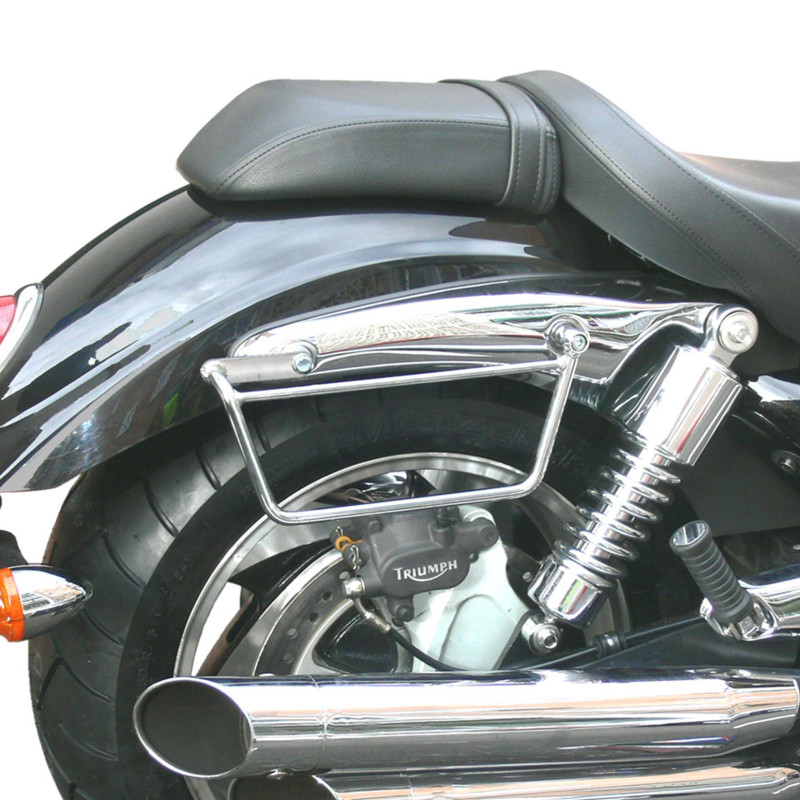 Entscheiden Sie sich für Praktikabilität und Sicherheit mit diesem Paar Klick Fix-Satteltaschenhalterungen, die für eine schnelle Installation und optimalen Halt Ihrer Satteltaschen konzipiert sind. Diese aus robustem Stahl gefertigten Halterungen sind in verchromter Ausführung oder mit schwarzer Epoxidfarbe erhältlich und passen perfekt zum Stil Ihres Motorrads.