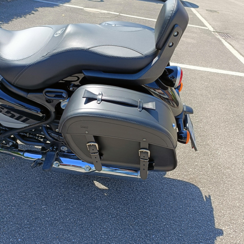 Vereinen Sie Stil, Robustheit und Funktionalität mit unseren Echtleder-Satteltaschen, die für anspruchsvolle Motorradfahrer entwickelt wurden. Witterungsbeständig und mit einem sicheren Befestigungssystem ausgestattet, bieten sie eine große Stauraumkapazität und bewahren gleichzeitig die Eleganz Ihres Motorrads. Sie sind bereit, mit Ihnen unterwegs zu sein und vereinen Qualität und Funktionalität für den täglichen Gebrauch mit völliger Sicherheit.